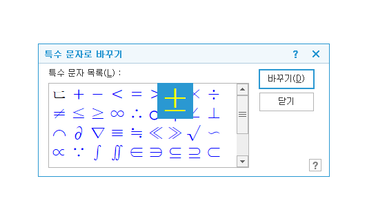 플러스 마이너스 기호를 입력하는 방법은 "ㄷ" 입력한뒤 즉시 키보드의 "한자 변환키"를 누른다. 그러면 윈도우 화면 맨 아래 우측에 "문자 입력창"이 나온다.